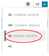 To see the range of exam reporting term dates, click on the Report Terms selector in the top right corner. Due dates for exams must be between the dates listed next to X1 (1st semester) or X2 (2nd semester).